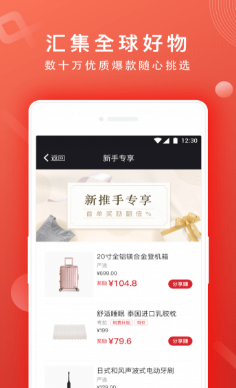 2、品质好物:汇集全球数十万优质爆款,多形式一键分享;