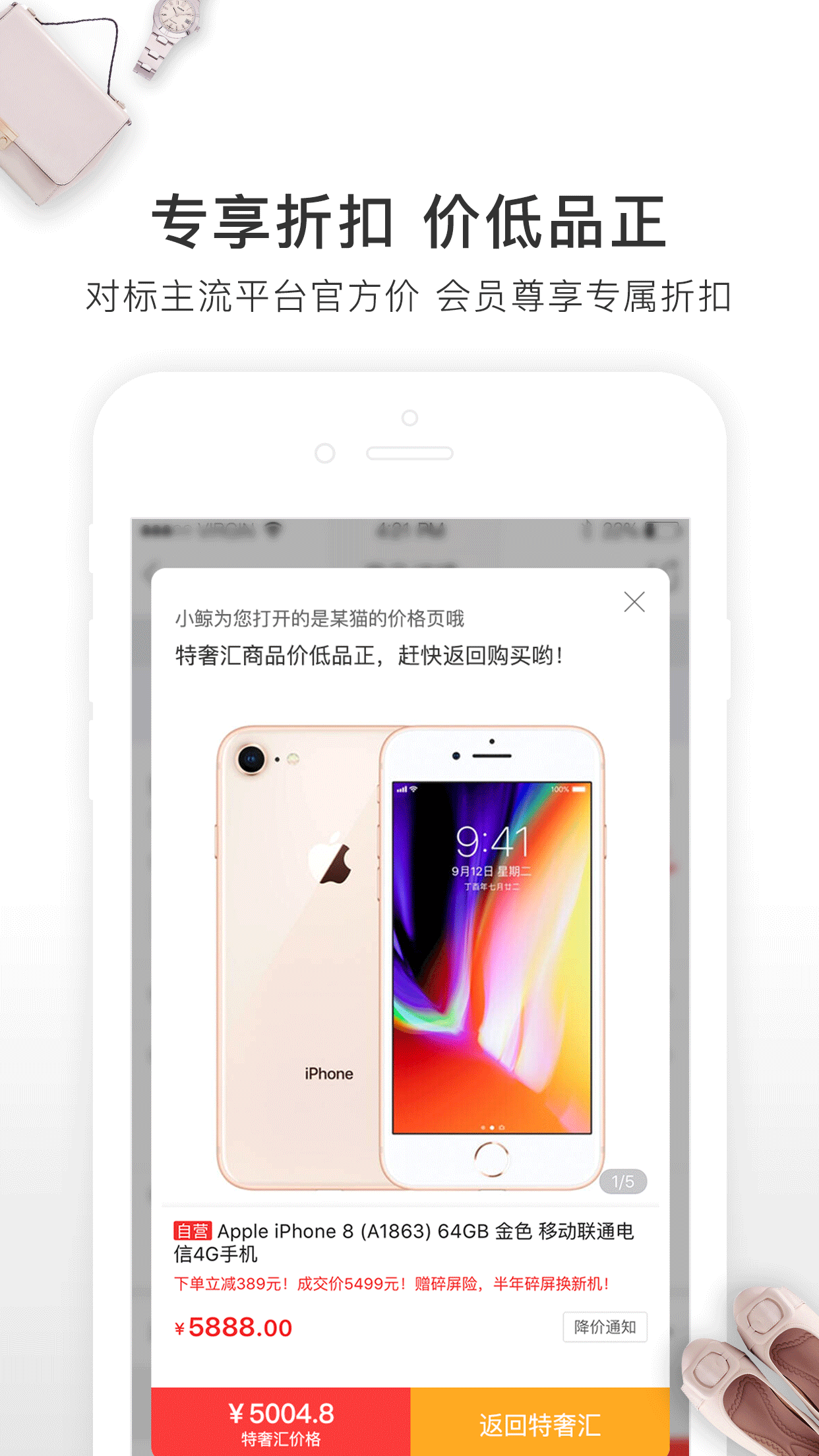 3、深度折扣:目前已有逾1000个品牌入驻特奢汇。低至1折起的大品牌特卖活动,让您开心购、惊喜购;