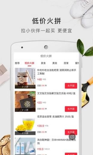 1、低价火拼:每周精选商家好货,邀请朋友圈小伙伴一起拼团享受低价;