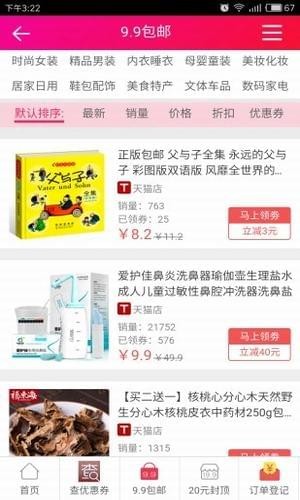 2、9块9包邮抢购:精选优质商家产品,券后至高9块9包邮,让你买到笑;
