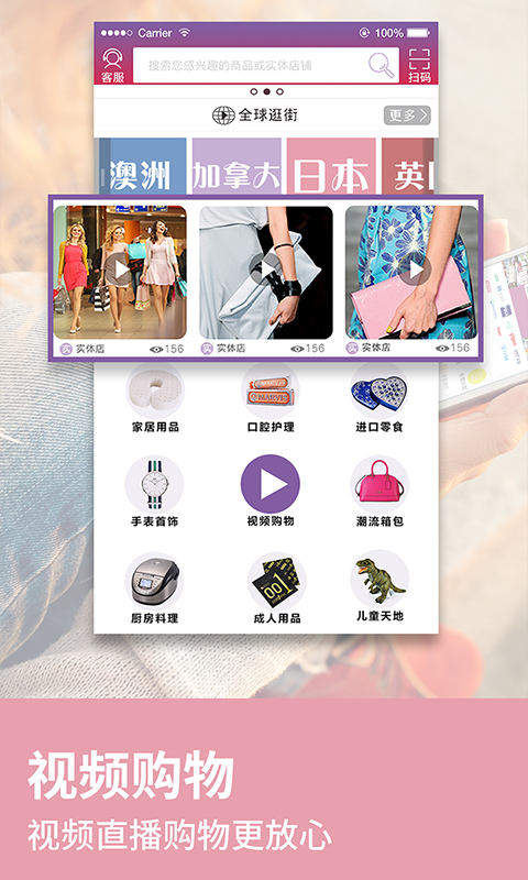 把海外商家的店面直接搬到海量中国买家的手机里,并24小时现场直播和开门营业。