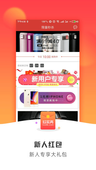 好实再精选源头商品,定时推出特价爆款,0元秒杀等活动,优惠、分红让购物不再单调;