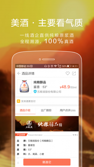 2、一线名酒 :酒厂直供,品酒大师力荐,好喝顺口不上头;