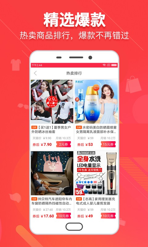 1、领券购物:汇聚淘宝商家发布的购物券与折扣商品,淘宝购物更省钱;