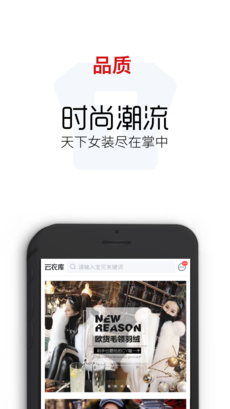 专注于女装批发的手机购物商城!《云衣库》不仅能为你提供丰富的优质服装,还可以让你在这款软件中享受到完善的物流快递服务哟!感觉不错的话就赶快下载软件开始购物吧!