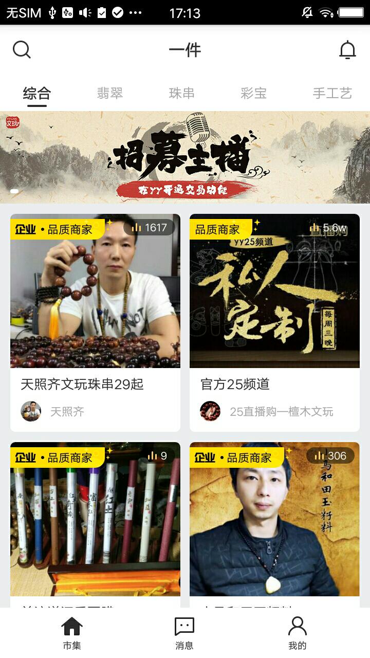 匠心独具,仅此一件,YY出品的非标品内容电商APP,主打手工艺、玉石、文玩等非标品,秉承“原创、匠心、物美、价廉”的理念,为广大消费者甄选优质的原创个性化商品。