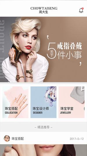 周大生珠宝APP内有专业珠宝首饰搭配专家、珠宝首饰搭配潮人每天与你分享珠宝穿搭小技巧,专业有体贴地告诉你如何将自己打造得更明媚动人,就像你的随身闺蜜让你享受到首饰搭配的乐趣;