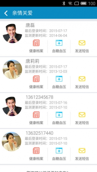 【亲情关爱】通过健康小屋随时可查看父母健康信息。