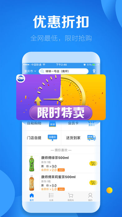 球球便利通过app和线下门店为用户提供零食、水果、饮品、生活用品等购物需求。