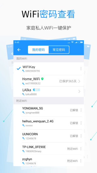 《WiFi钥匙》是一款让你能够直连WIFI的神器,帮你省下手机流量,并帮你管理WIFI,防止他人蹭网,轻松实现自动联网,再也不用烦恼流量不够用,感兴趣的话,就来下载吧!