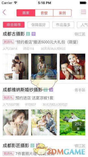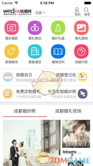 一站式婚纱摄影、婚庆服务、婚宴酒店、团购优惠活动,覆盖中国270个城市,共有86000个会员商家入驻,每日为数十万消费者免费提供婚嫁消费预订服务。