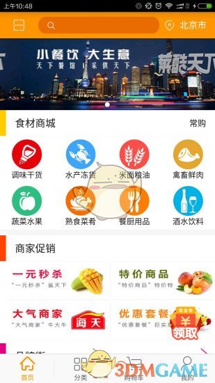 定位:商家与餐馆的B2B交易平台。餐饮企业可以随时随地查看到本地所有食材的价格,进行比价。为其提供低价、透明和优质的采购服务;