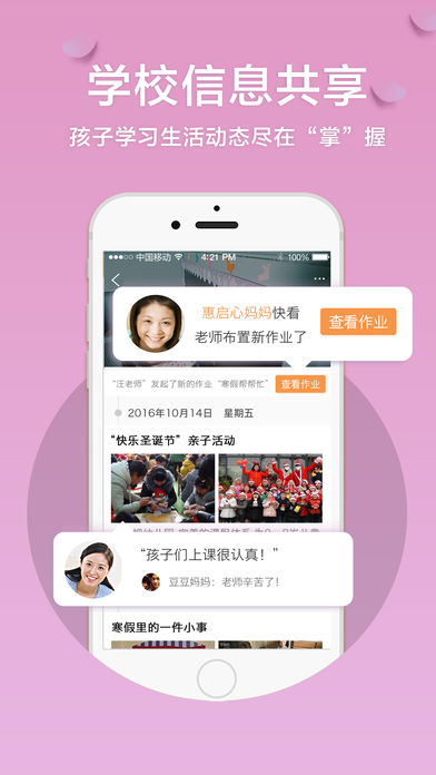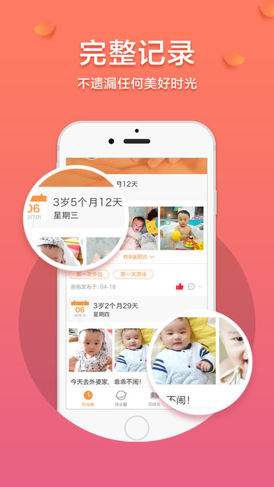 每个家长,都会慨叹,孩子飞快成长,曾经让你欣喜欢悦的重要时刻:出生、满月、会笑、蹒跚学步……却在记忆里模糊,在时光的飞逝中不知所踪。成长印记,与亲朋好友共同记录实时分享,让距离不再阻碍看得见的陪伴。