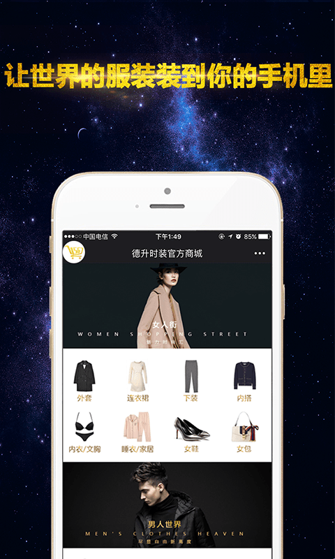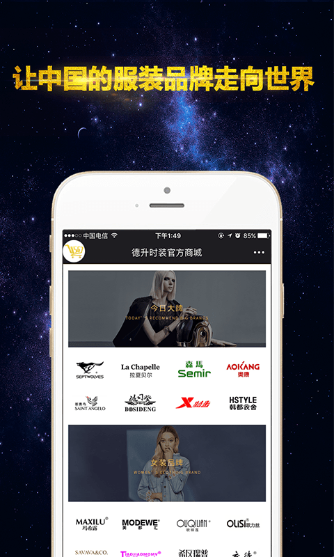 2、德升.未来3年嫁接国内所有时装品牌入驻,未来5年嫁接世界品牌入驻,让中国品牌行销世界,让世界品牌装到你的手机里,让67亿人口无忧共享全球时装资源;