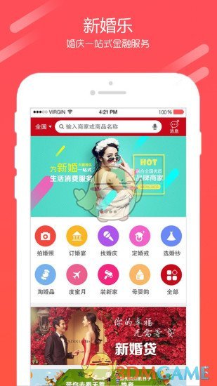 《新婚乐》是新婚宝(北京)电子有限公司开发的一款应用软件。这里是婚嫁领域一站式购物平台,有标准严格的婚庆商家和优质的商品。线上线下,尽享优惠和折扣。 新婚乐,新婚家庭必备购物神器,婚庆、婚纱、新车、装修、旅游、母婴、早教等爆款商品,定期特价、节日爆