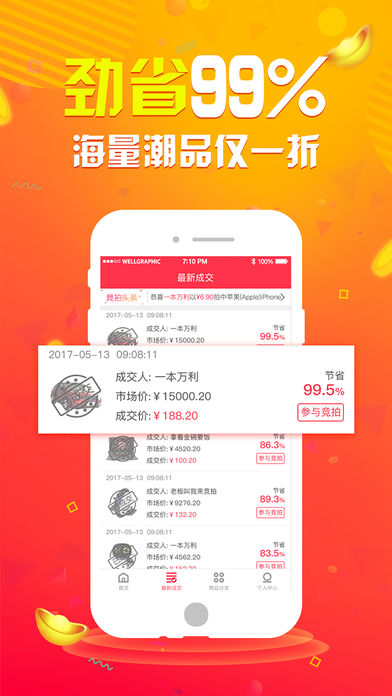 3、天天竞拍,革新竞拍模式让你以成本加10%的价钱拍下你想要的商品,给您提供一种惊喜不断的拍卖过程。