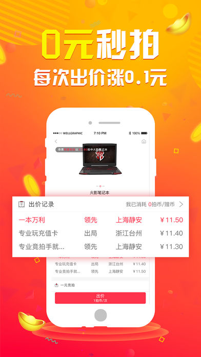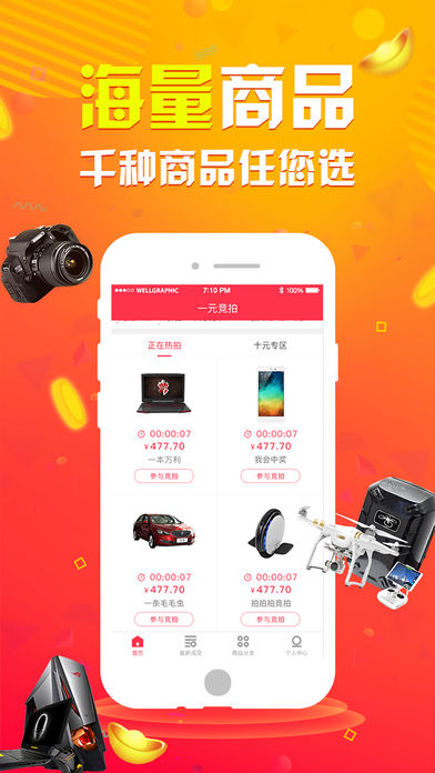 全场商品0元起拍,每拍一次价格只上涨0.1元,10秒内无人竞争,您即可以前所未有的低价带走心仪商品;