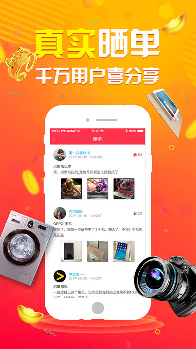 手机电脑、数码照相、金砖珠宝、护理化妆、日常家电,上千种新款、潮流的商品应有尽有,想拍就拍;