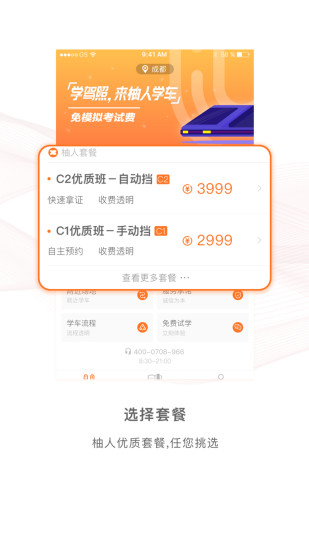 柚人学车是成都圆卓网络科技有限公司推出的一款学车类APP,包含了在线报名,考前学习,免费试学,套餐选择等在线服务。助你轻松拿驾照!