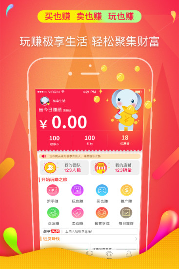 一键购买APP平台商品,即可成为极享授权会员。以会员身份购买平台所有商品均享受超值会员价格,越买越省钱。同时还可以做卖家,实现本地化创业,享受海内外大牌货源、金牌讲师培训、海量推广图文和在线客服等全程支持。