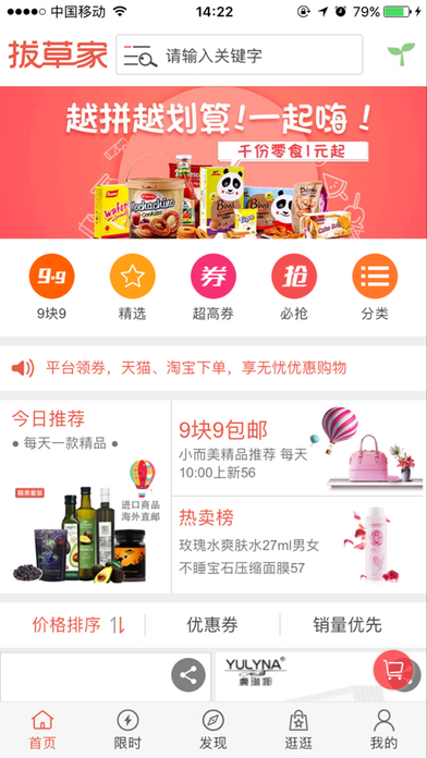 精选各大商城特卖商品优惠券,购买商品不仅有高额优惠券,还有返利。最高返利商品价格10% 网购、打折购物首选拔草家。来拔草家看什么值得买商品。