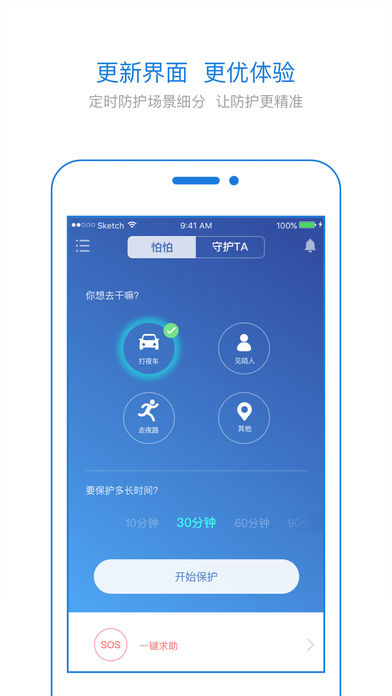 当你需要走夜路夜晚回家、打黑车、去往危险的地方,还是第一次与陌生人见面,你需要做的就是让怕怕知道,它会在你整个行程中通过 GPS 守护你。