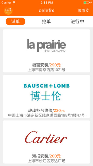 我们的团队分布全国,并能做到瞬时相应,全国同步。快装自主开发应用管理APP,具备一键接单、批量发单、后台管控等功能,利用平台将工人和客户连接,并全程管控服务流程。 安装师傅可以通过实名、资格认证,免费入驻。