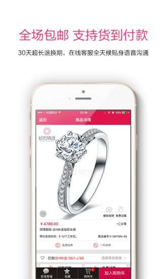 《钻石快线》是一款专卖珠宝的在线商城。各种珠宝,只要你想要的,这里全部都有。更有360度无死角视频展示,让你轻松查看珠宝质量。工厂直达消费者,没有中间商赚差价,更加优惠!