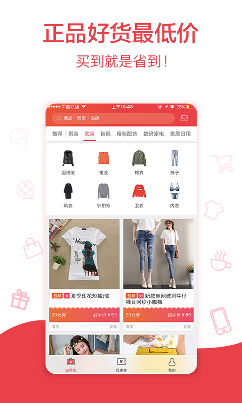 《省钱日报》,一款真正能帮助你省钱的购物软件。各种商品,全部都是全网最低价。无论是家居服装,还是美食饮品,全部都是最低价,更有9块9包邮的原装正品,让你买到就是赚到。