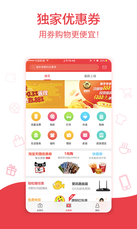 1、优惠券大改版,小编将您最喜欢的内容进行了收集整理,放在了最为显眼的位置,向左滑动,惊喜更多;