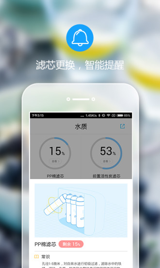 1、实时监控水质,多维净水指标一目了然,滤芯更换智能提醒;