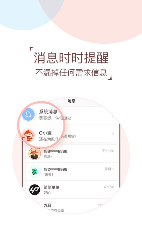 5、消息时时提醒:不漏掉任何需求信息,智能匹配用户相应需求;