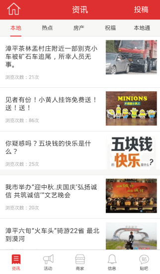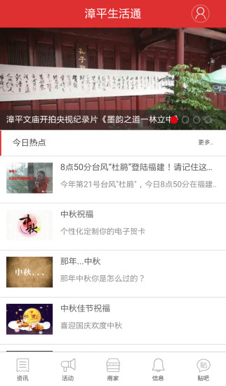 漳平生活通聚集了所有漳平资讯、同城活动、全城商家、商家优惠、分类信息、本地贴吧等一站式信息平台,专注为漳平人民服务!打造本地最高端的地方门户平台,给大家提供一个便捷的掌上生活,一起开启全新互联网时代。