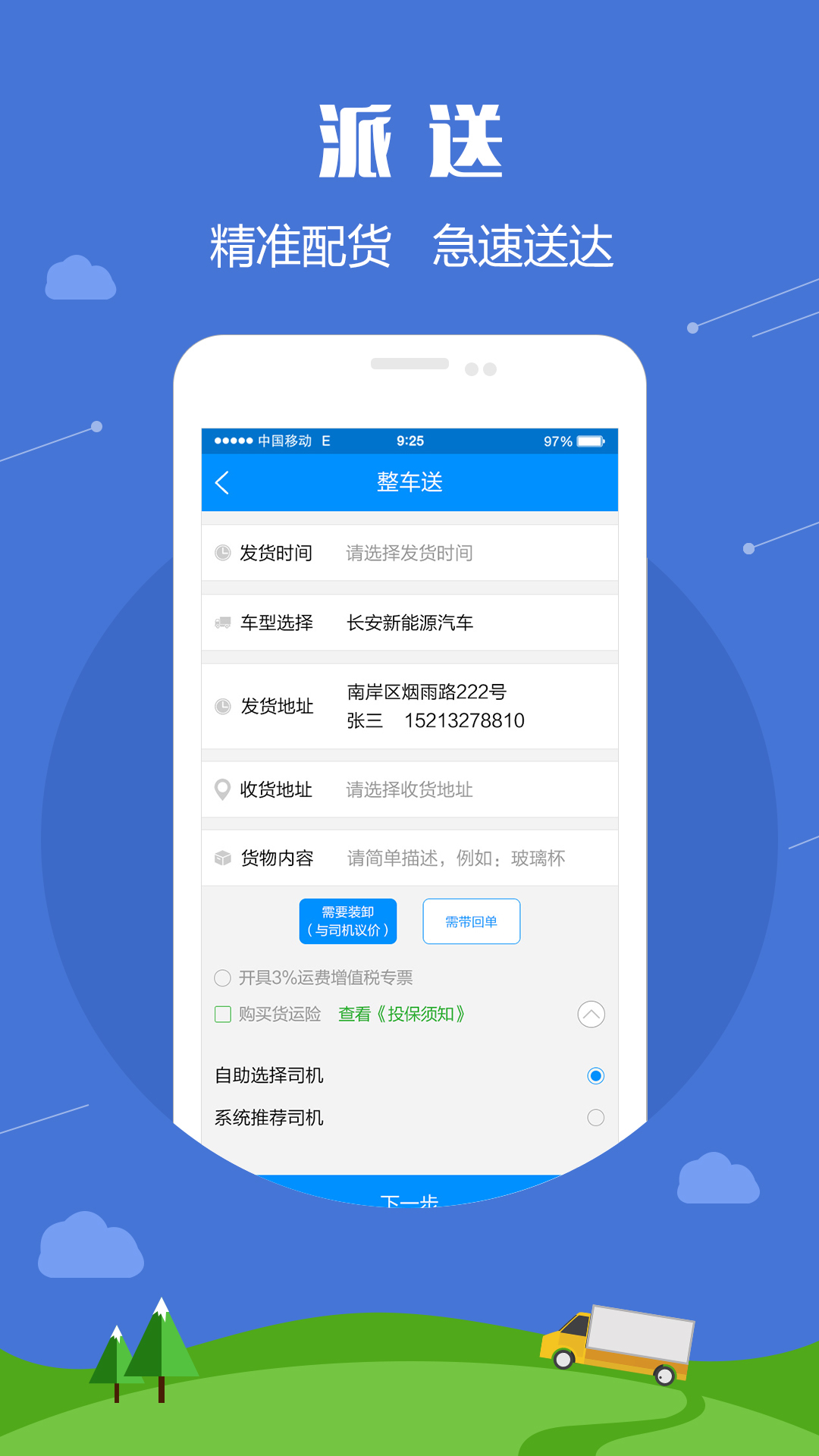 司机开启接单后,系统智能计算出其周围货物并派发给司机,解放司机双手。