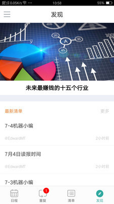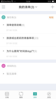 时间表同时具备日历/任务清单/提醒功能,但它更大的作用在于它的智能分析系统,根据该算法为用户提供个性化和针对的日程待办提醒活动建议,成为用户的专属个人提醒中心,用户可以不输入或少输入就能得到自己的日程提醒。