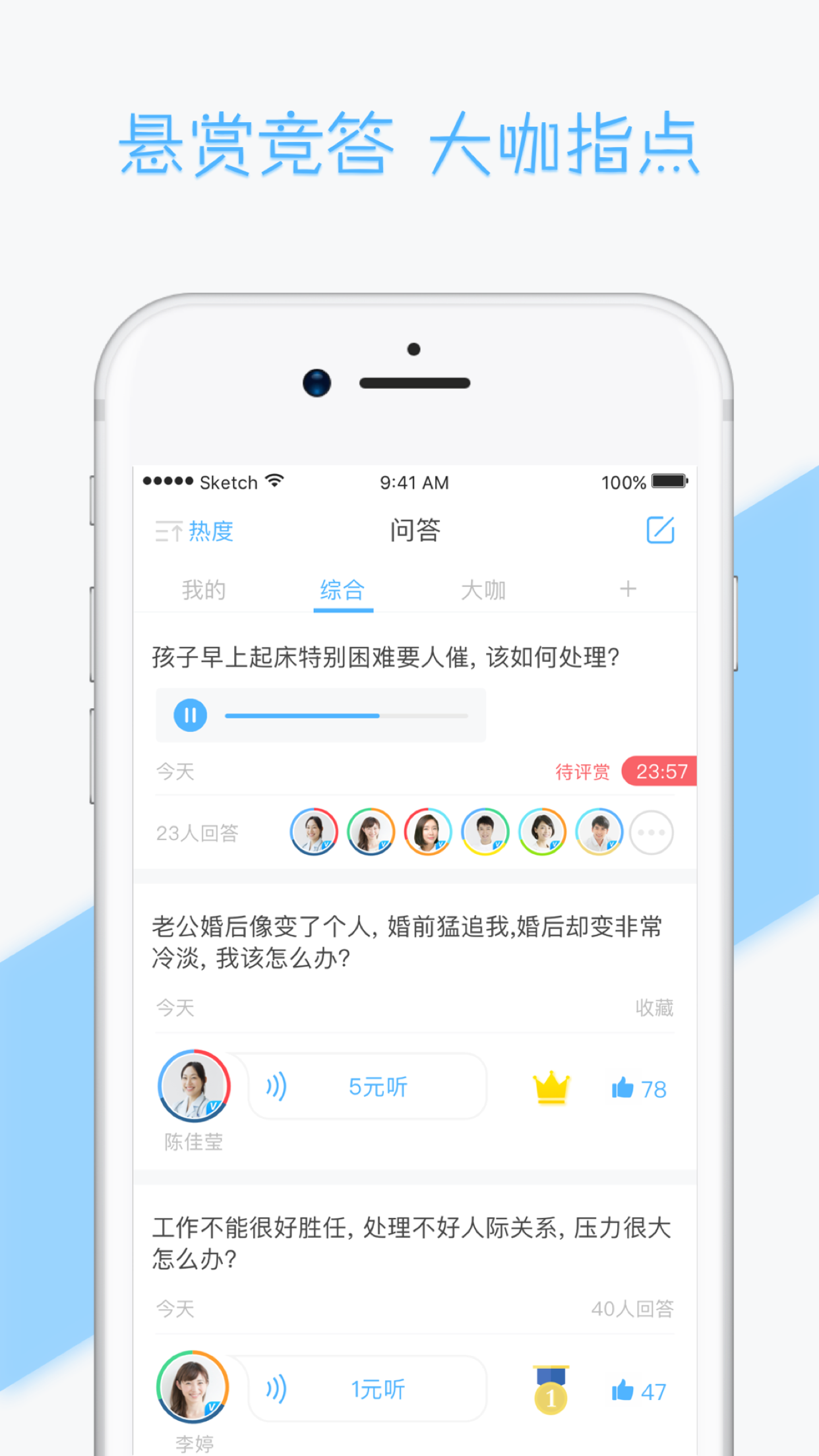 2、【悬赏竞答,大咖指点】:多种趣味提问、语音便捷回答,能帮助您更快的找到心仪的答案;