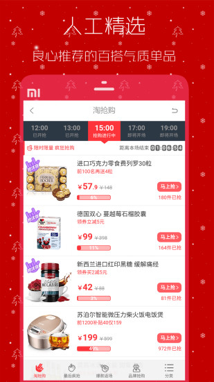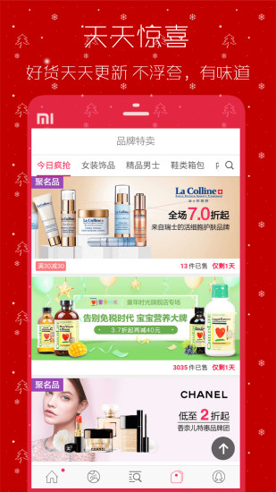 【类别丰富】包含女装 ,男装,母婴,居家,鞋包配饰,美食,数码家电,化妆品,文体;