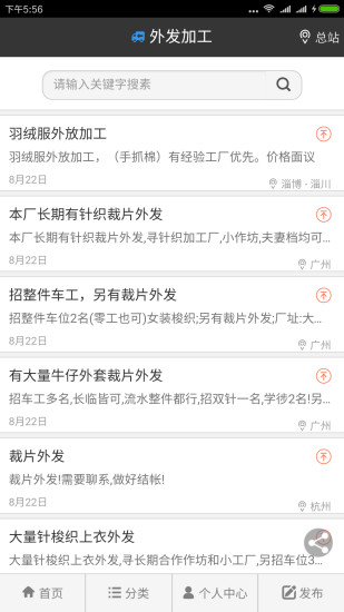 手机上的免费服装加工信息平台。服装加工手机助手,聚集了大量服装订单、外发加工信息、服装库存、招工求职、面辅料供求、设备租让维修及厂房租让等服装生产加工信息。