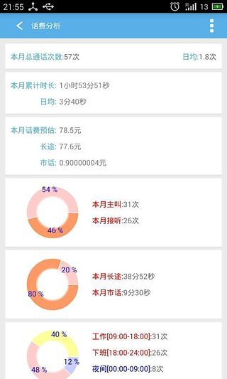 3、拉近和小伙伴们的关系。时刻了解与客户、领导、男女朋友、同事、朋友、亲人、合作伙伴之间的通话时长、通话频率、主叫被叫、周期等详细情况,并附有智能提醒,不用再担心因为忙碌而忽略了客户、伙伴的维护,拓展人脉、维护人脉关系的法宝;