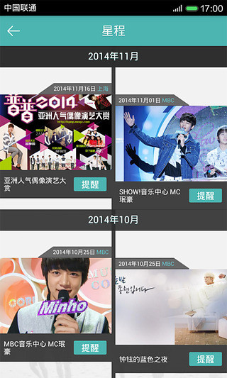 星程:SHINee最新行程一目了然,并推出了提醒功能,保证不会错过SHINee的每一个瞬间;