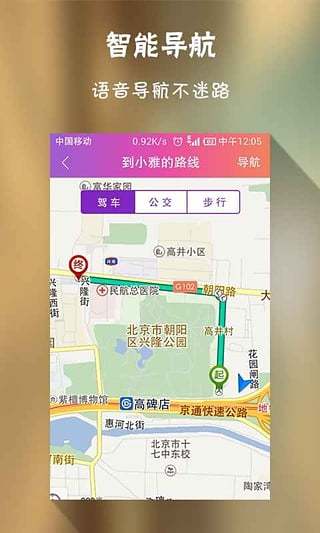 3、路线导航:最精准的导航,可以直接导航到人,系统自动提供最佳路线,并有语音导航功能;