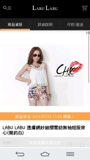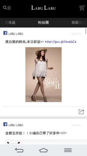 LABU LABU台灣流行女裝指標品牌唯一官方手機購物商店&穿搭重點Fashion lookbook行動購物 瀏覽介面方便,快速找到您所需商品!快速結帳 加密付款機制,安全不擔心便利取貨!推播訊息 流行不落人後,與歐美日韓同步接軌!折扣優惠 好康折扣優惠,平價時尚保證最划算!