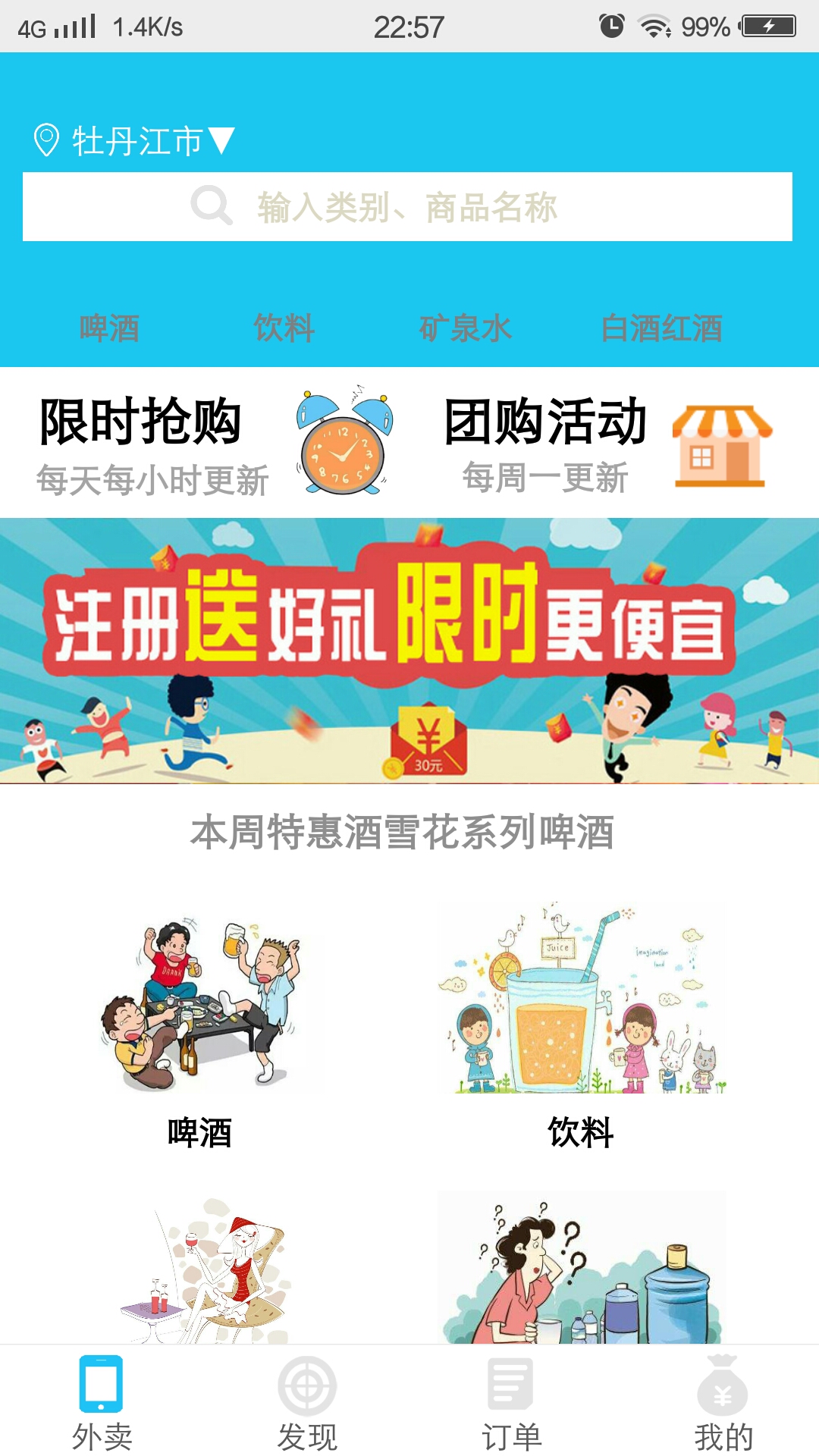 快饮APP应用软件是一款酒水外卖app软件,主要应用于同城购物外卖,将啤酒,饮料,矿泉水等品牌酒水,厂家一站式服务配送到用户手中,让广大用户喝到更好更放心的酒水,饮用有保障,服务更周到,价格更优惠,让用户们得到真正的实惠,让宅男宅女们足不出户即可享受快饮带给我们的美好生活!