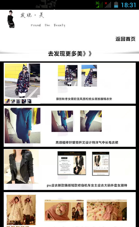 点击“去发现更多美”按钮,您会进入清晰明了的目录页面,点击分类标签,进入更多美衣让您去发现