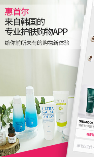 《惠首尔》是一款为用户提供一对一商谈服务的护肤品购买软件。本软件会针对您的肌肤问题及特征从而为您推荐适合您的护肤品。本软件保证只销售安全性及有效性经过严格鉴证的韩国正品护肤品,并且安全快速的物流直邮至您家,即刻与美肤专家进行专业皮肤商谈吧。感兴趣的小伙伴快来下载使用吧!