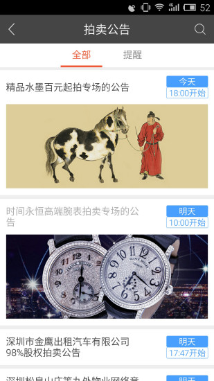 3、【信息与拍卖】:整合各地区的拍卖公告与拍卖活动,客户能便捷地获取完整、精确的拍卖信息,无一遗漏,缩短客户获取拍卖信息的链条。智能化推送订阅信息,贴心的提醒服务。