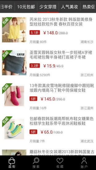 2、今日半价:编辑精选,五折商品买不停;