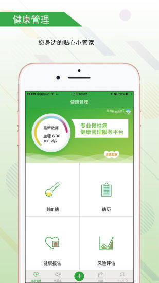 《健康高管》是一款以慢性病综合管理为主的免费服务平台,平台以提供糖尿病、高血压、心率健康等常见慢性病为特色的智能管理服务软件,让用户在这里免费享受到慢性病的综合服务,使用户的身体健康化、年轻化。