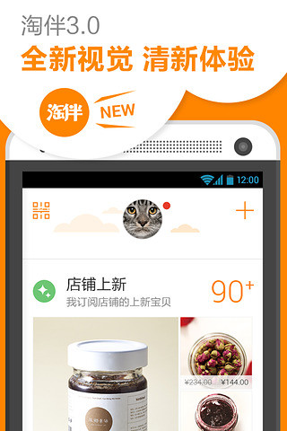 《淘伴》是一款手机购物软件,《淘伴》是淘宝网官方推出的。《淘伴》主要的功能与《淘宝网》类似,让用户随时随地逛店铺的上新、促销、热卖,还能通过相似店铺、猜你喜欢发现更多淘宝精品好店。
