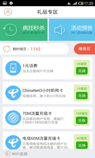 5、银豆兑换功能,丰富礼品免费领取,话费,兑换卷,时长卡应有尽有。